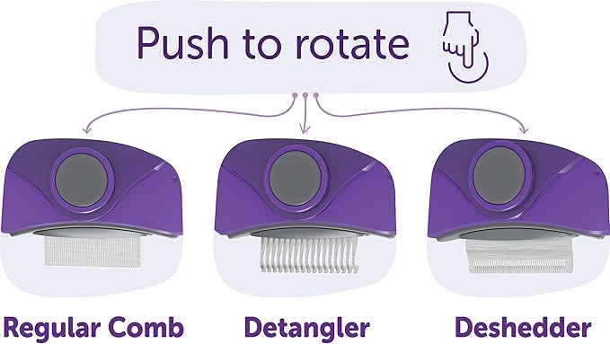 - EASY TO OPERATE - Simply push the center button of Deshedding, Dematting, and Combing Tool to rotate to whichever comb fits your needs between the mat remover, deshedder or the regular comb.