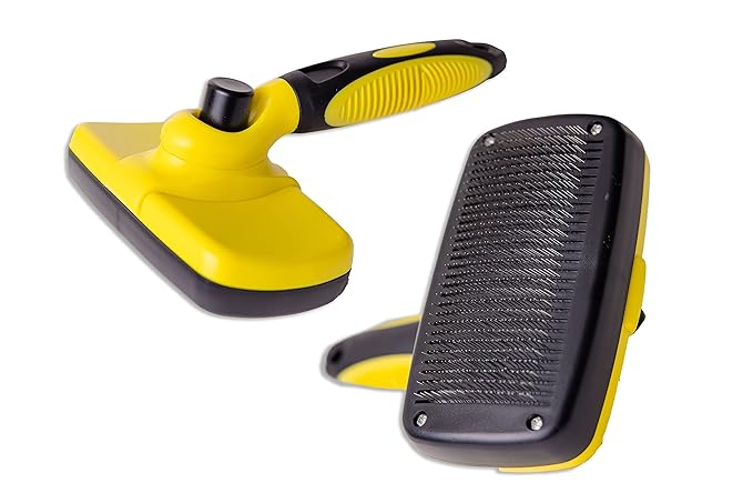 BarxBuddy Self Cleaning Slicker Brush for Dogs & Cats (Smooth & Gentle Bristles) Perfect Deshedding Tool For Long & Short Haired Dogs, Cats, Rabbits, and Other Pets Yellow