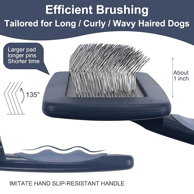 - 【More Tips】: YIRU brand,Exclusively available at our store " NEW FORCE1313 ". Professional dog pin brush for dogs,long hard stainless steel pin-25mm(1'') and 135°curved pins brush,which imitates the hand design of the rake hand.It's a large dog slicker brush,extra long slicker brush for medium and long haired dogs. Use this multi-purpose slicker brush for loose hair and undercoat,suitable for all Hair Types: long,straight,curly,thick,shaggy,wire.