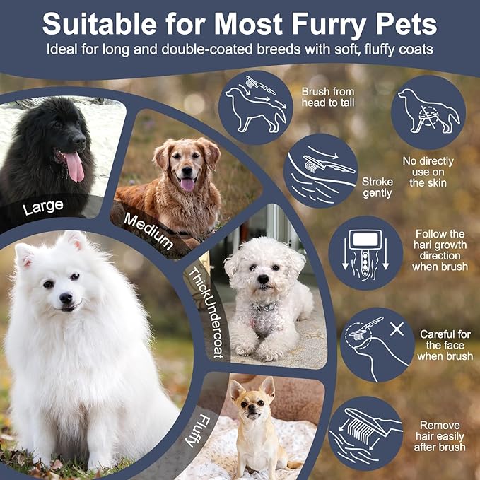- Supports Dry Pets- Suitable for daily care and dry hair after bathing, wet pets are not recommended.The slicker for dogs and cats can be used on medium long hair breeds. This long pin brush helps you quickly brush and gently remove loose hair, undercoat,saving your time and facilitating your operation.
