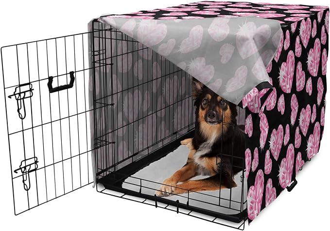 Ambesonne Diamonds Dog Crate Cover, Romantic Pink Heart Stones on Black Background Valentines Day Theme, Easy to Use Pet Kennel Cover for Medium Large Dogs, 36 Inch, Pink Black
