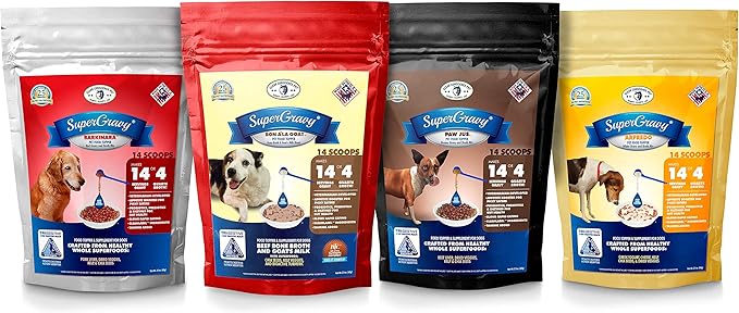 SuperGravy The Ultimate Gravy Four-Pack - Natural Dog Food Gravy Topper - Hydration Broth Food Mix - Human Grade 14 Scoop Bags, 56 Scoop, 01107