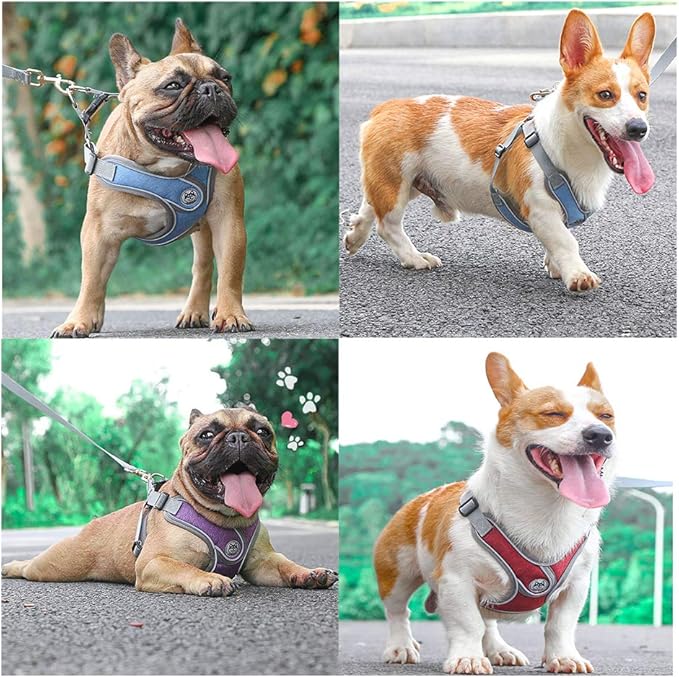 - 【Step-in Dog Harness】Made of high quality density nylon material, Soft Air Mesh,It's very comfortable and breathable. Reflective straps to ensure your dog is highly visible at night.