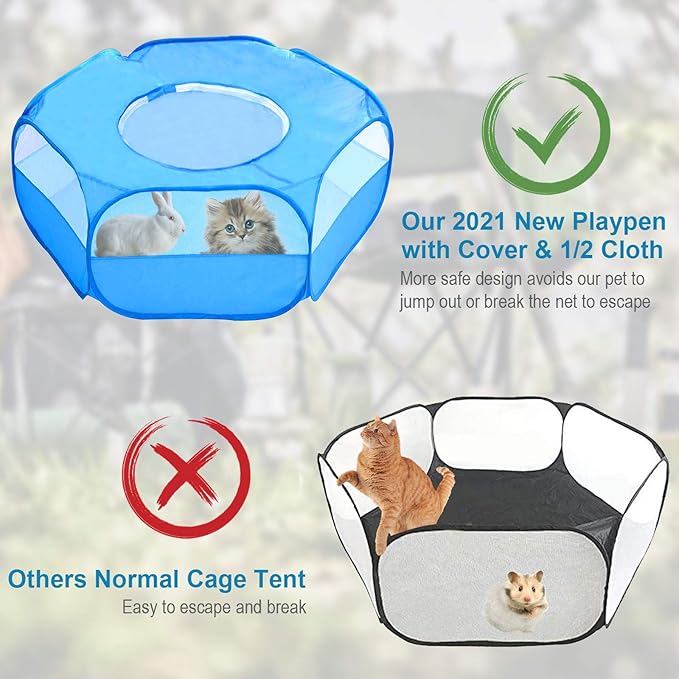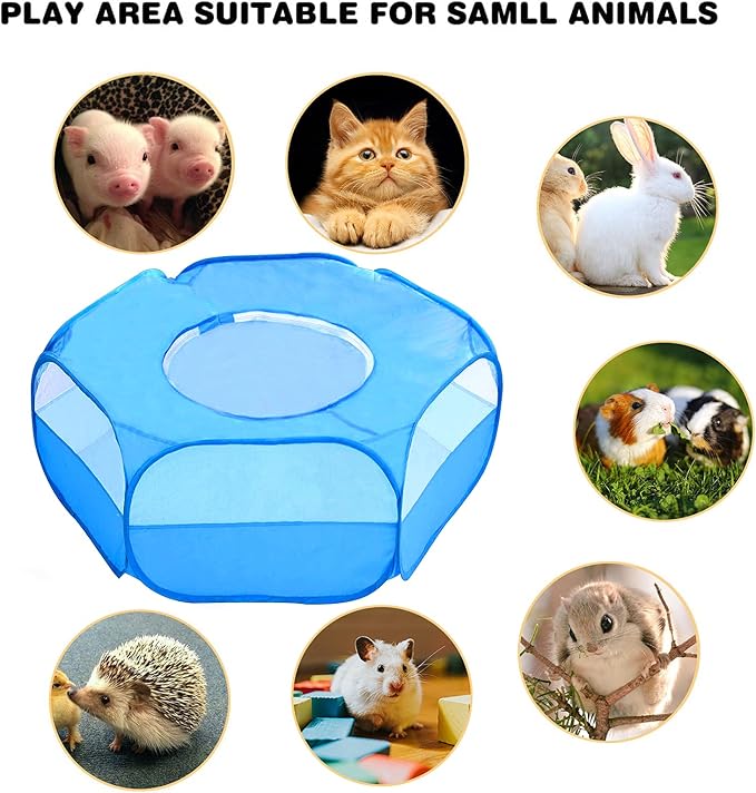 Small Animals Playpen, Breathable & Waterproof Pet Playpen Cage Tent with Zippered Cover Outdoor/Indoor Portable Fence Tent for Puppy/Kitten/Rabbits/Hamster/Chinchillas/Guinea Pig (Blue)