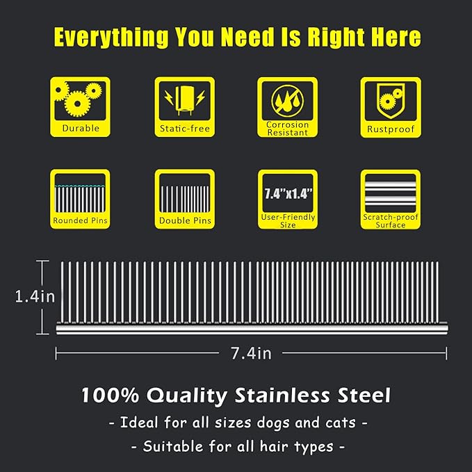 - Made with premium stainless steel, round and gentle teeth for scratch proof, very durable and smooth. Effectively remove loose hair, dander & dirt trapped beneath fur.