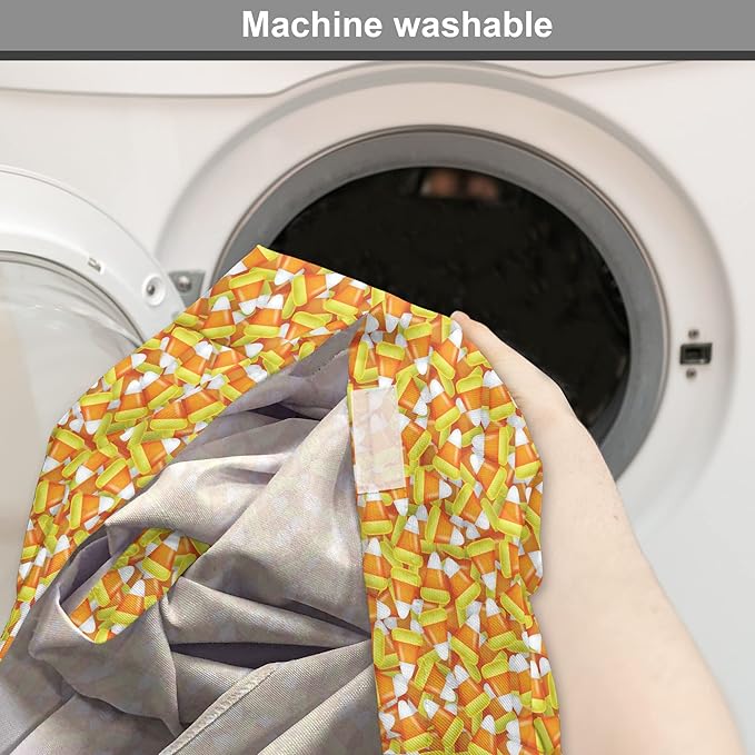 Lunarable Candy Corn Dog Crate Cover, Halloween Design of Cartoon Style Foods Scattered Randomly, Easy to Use Pet Kennel Cover for Medium Large Dogs, 36 Inch, Apricot Avocado Green