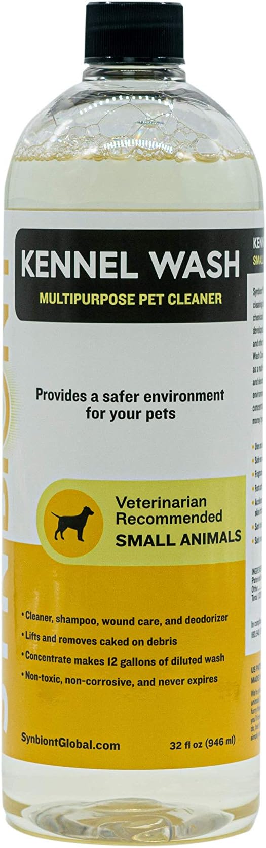 Synbiont Kennel Wash 32 oz Concentrate - Cleaner & Deodorizer for Birds, Cats, Dogs, Rabbits, Chickens - Dog Kennel Deodorizer Alternative - Pet Shampoo