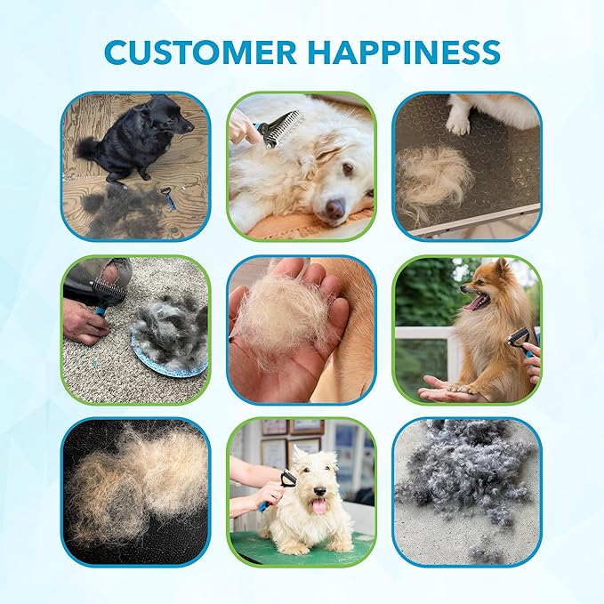 - Dual Headed Design - Unlike other pet grooming brush that come as a set with interchangeable heads, the 2-in-1 head design of our dog rake gives you the same convenience from a single unit. It has 9 more rounded blades on one side for de-matting and 17 razor-sharp blades on the other side for de-shedding.