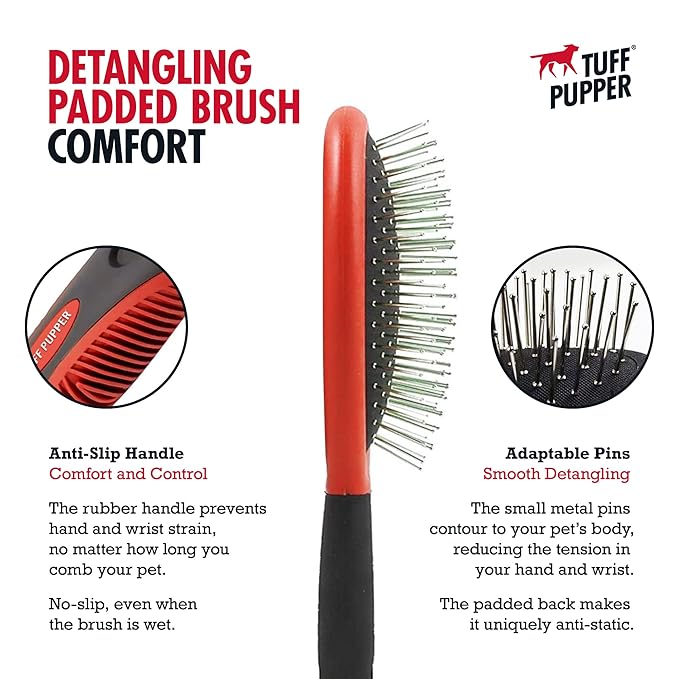 - ★ A COMFORTABLE AND PLEASANT EXPERIENCE - All veterinarians recommend regular grooming to their pet owners. Regular use of Tuff Pupper's dog de shed pin brush provides your pet with a soft and shiny coat. Regular quality grooming time with your pet will ensure they learn grooming is a pleasant experience and will look forward to being combed!