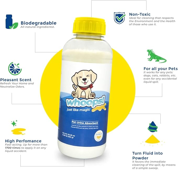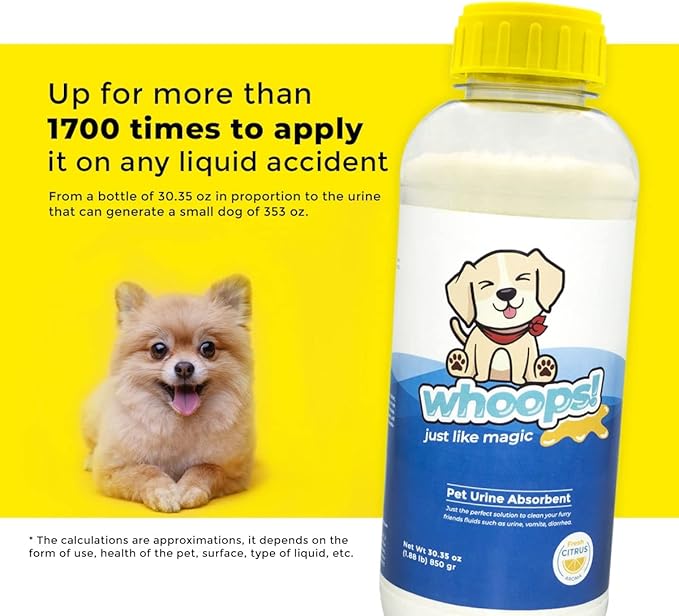 Whoops! Pet Accident Cleanup Powder - Non-Toxic, Citrus Fragrance, Absorbs & Deodorizes Urine, Vomit, Diarrhea - 1 Pack (29.98 oz Each)