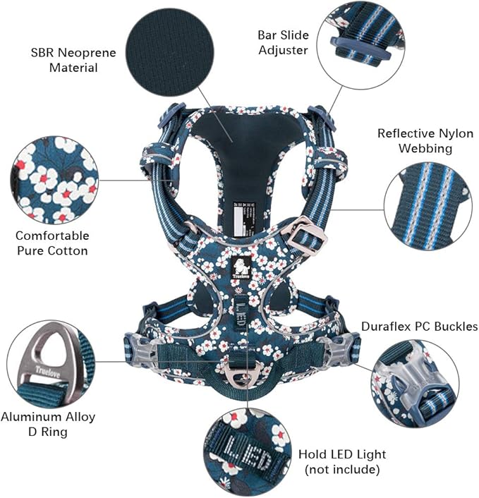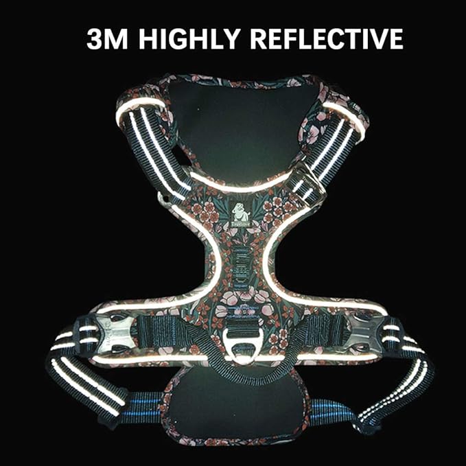 La La Pet® No Pull Dog Harness with Front Clip, Reflective Dog Vest Harness with Handle Floral Neoprene Padded Dog Vest for Puppy Small Medium Large Dogs 3 Snap Buckles Easy to Put on & Take Off