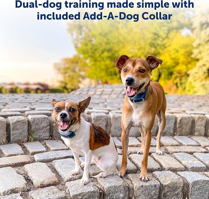 - OFF-LEASH TRAINING: Safely train and correct your pup’s unwanted behaviors off-leash with a lightweight digital remote and collars; system includes 2 collars for training both your dogs at once