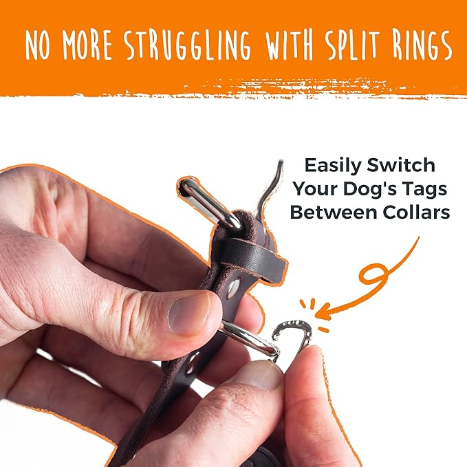 - Change Pet Tags Quickly: Does your dog have more than one collar or harness? Our carabiner clips make it easy to switch your dog’s tags between their gear.
