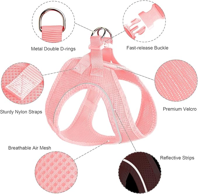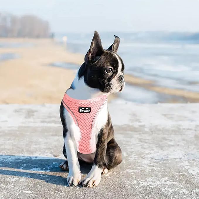 TwoEar Dog Vest Harness Reflective, No-Pull Pet Harness Easy Control with Breathable Mesh, Soft Puppy Step-in Harness No-Choke for Outdoor Walking, Training for Medium Dogs(M, Pink)