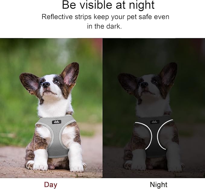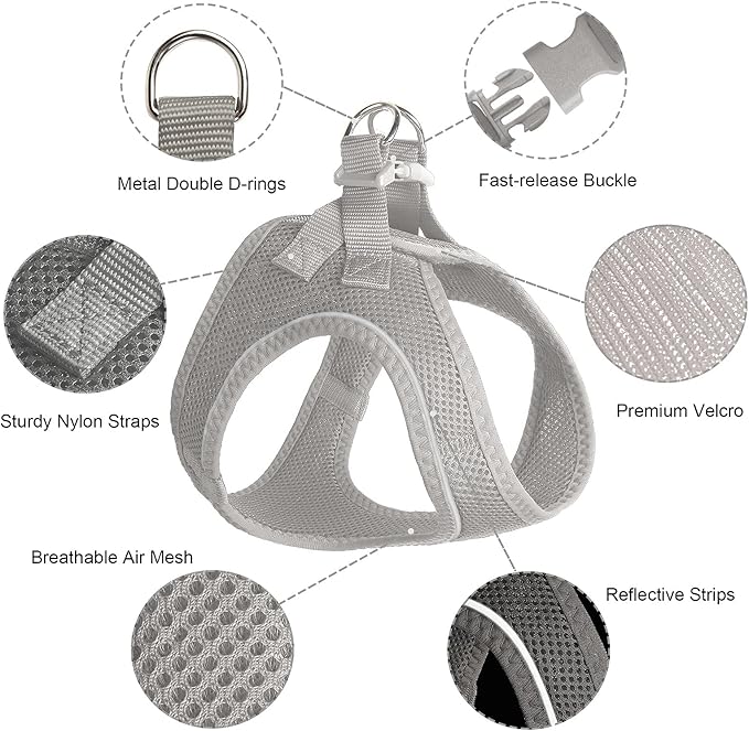 TwoEar Dog Vest Harness Reflective, No-Pull Pet Harness Easy Control with Breathable Mesh, Soft Puppy Step-in Harness No-Choke for Outdoor Walking, Training for Small Dogs(S, Grey)