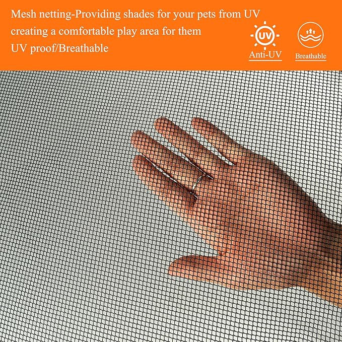 PJYuCien Dog Playpen Mesh Top Cover, Fits 36 Inch 4 Panels Regular Square Plastic Exercise Pet Pen, Adhesive Tape Connections, Black (Note: Cover Only, Fence Not Included)