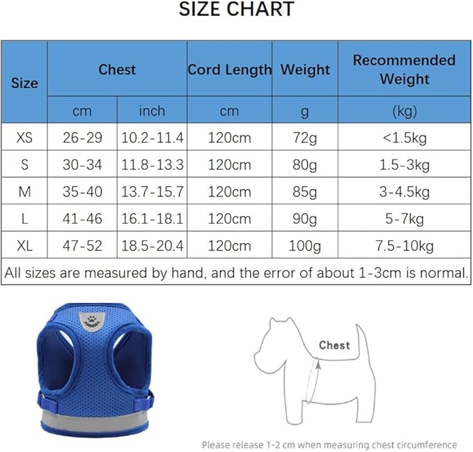 - ★Size S: Chest girth 11.8” – 13.3”, Cord length 120cm/47.24”. Fit for cat, tiny small dogs weight about 1.5-3kg/3-7lbs. Please measure your dog/cat carefully and refer to the size chart before order.