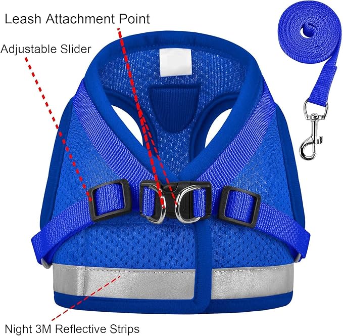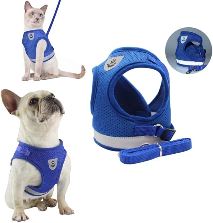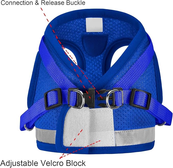 - ★All-weather mesh: This cat harness or small dog harness is made of lightweight, soft, breathable air-mesh fabric, with soft edge and resilient cushioning, which can effectively prevent injuries, giving extra comfort and protection, this all-weather pet vest won't be too bulky to restrain your pet's movement or overheat your lovely pet when hot, and reinforced stitching allows you to walk your pet with confidence.