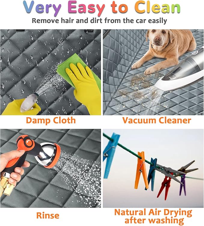 - EASY TO INSTALL & CLEAN: It only takes seconds to install the backseat dog cover. Just snap the buckle straps around your car’s headrests and tuck in the seat anchors. Easy to clean with a damp cloth or vacuum