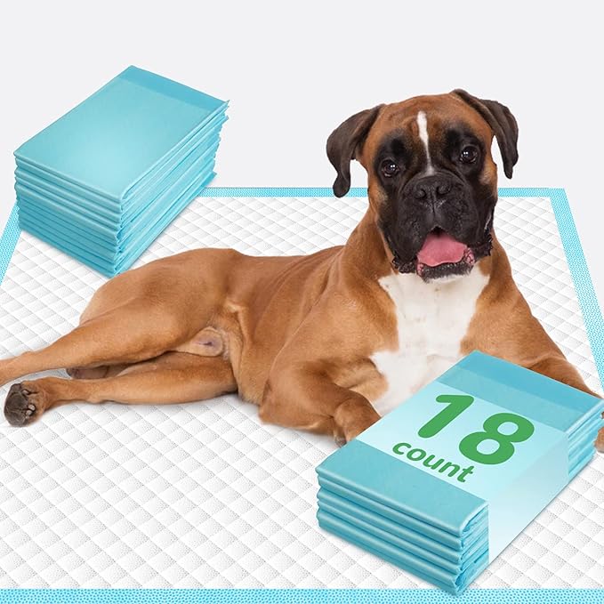 - Leak-proof Protection to Keep Your Home Clean: Each of extra large dog pads features the new upgraded plastic backing (thickened PE film) which is much more leak-proof, tear-resistant, and durable than most pet pee pads in the market as the last-layer of the puppy training pads. It can protect your floors, carpets, sofas, chairs, mattresses, beds, etc. from the urine damage by blocking leaks. It holds up to 9 cups of liquid.