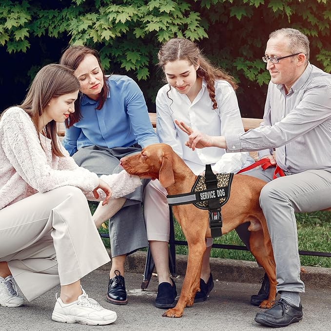 Dogline Unimax Dog Harness Vest with Service Dog Patches Reflective No-Pull, Adjustable Straps, Breathable Neoprene for Medical, Service, Identification and Training Dogs Girth 28 to 38" Leopard Brown