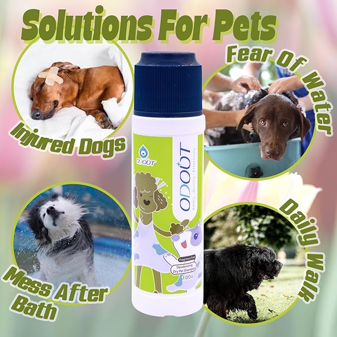 - Multi Application - Why shampoo powder? Fear of water, always a mess after bath, daily cleansing after walk and outdoor activities...there are so many reasons that you can’t refresh your pet frequently but the coat gets rough and smelly. Just use ODOUT dog shampoo powder. ODOUT has served millions of dogs and cats worldwide with abundant product line, we will provide you with one of the best pet products and service.