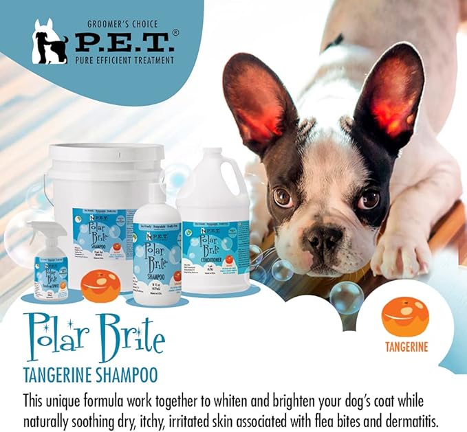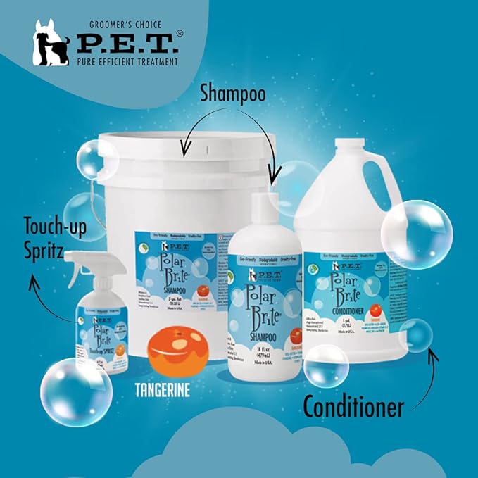 Polar Brite Tangerine Shampoo 16 Oz – Deep Cleaning & Whitening for All Coat Types, Made in USA by P.E.T.