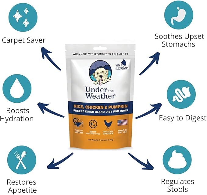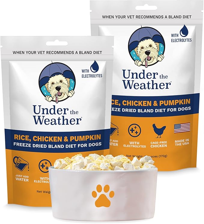 Under the Weather Bland Diet for Dogs | Easy to Digest for Sick Dogs |Always Be Ready | Contains Electrolytes - All Natural Freeze Dried 100% Human Grade Meats | 2 Pack - Rice, Chicken & Pumpkin - 6oz