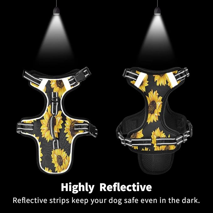 Beautiful Sunflower Flowers Floral Black Dog/Cat Harness,Adjustable Soft Padded Pet Vest Harness-Reflective No-Choke Pet Harness Easy Control Front Clip for Dog/Cats