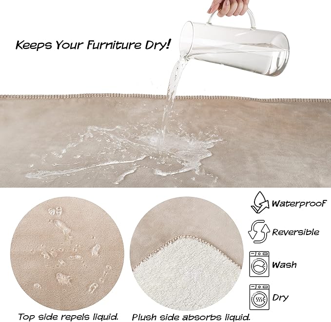 PETMAKER Waterproof Blanket for Pets - Reversible Throw Protects Couch, Car, and Bed from Spills, Stains, or Fur - Plush Blanket (Tan)