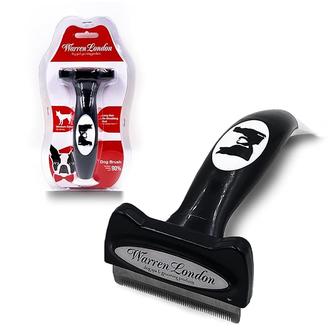 Deshedding Dog Brush by Warren London | Stainless Steel Deshedding Tool | Long Hair - Medium
