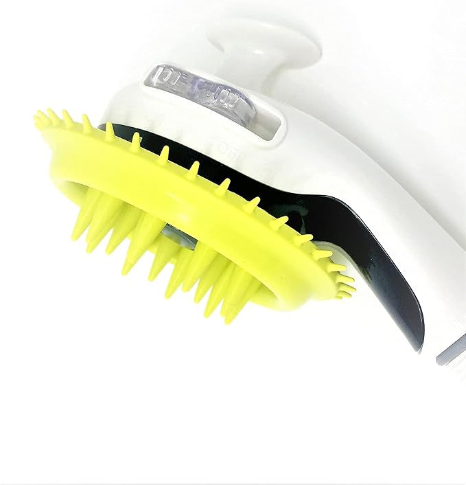 - Brush designed to increase water pressure. You stay dry while bathing your pet.