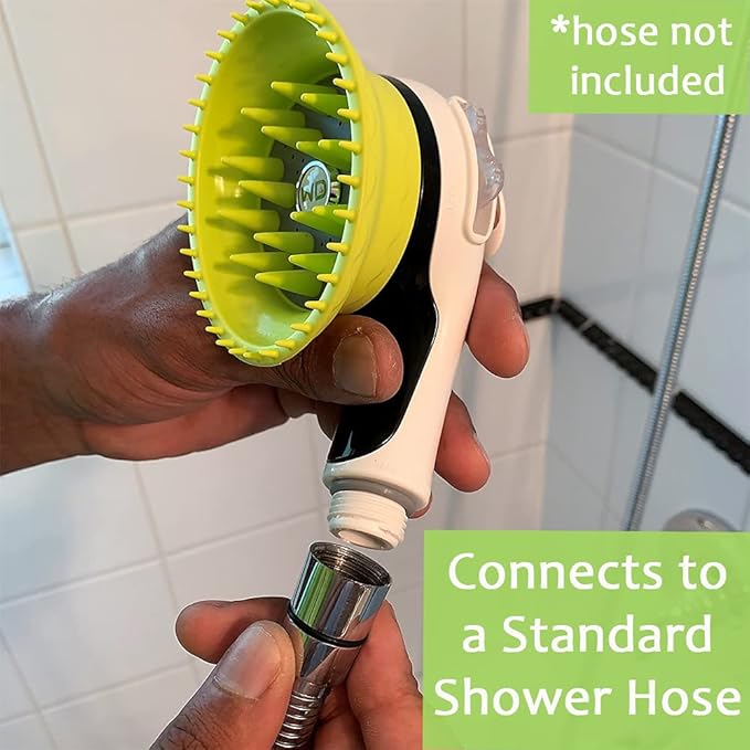 WD Handheld Shower Brush with On/Off Switch | Shield Water While Brushing and Washing Simultaneously | Dog Washing Shower Attachment