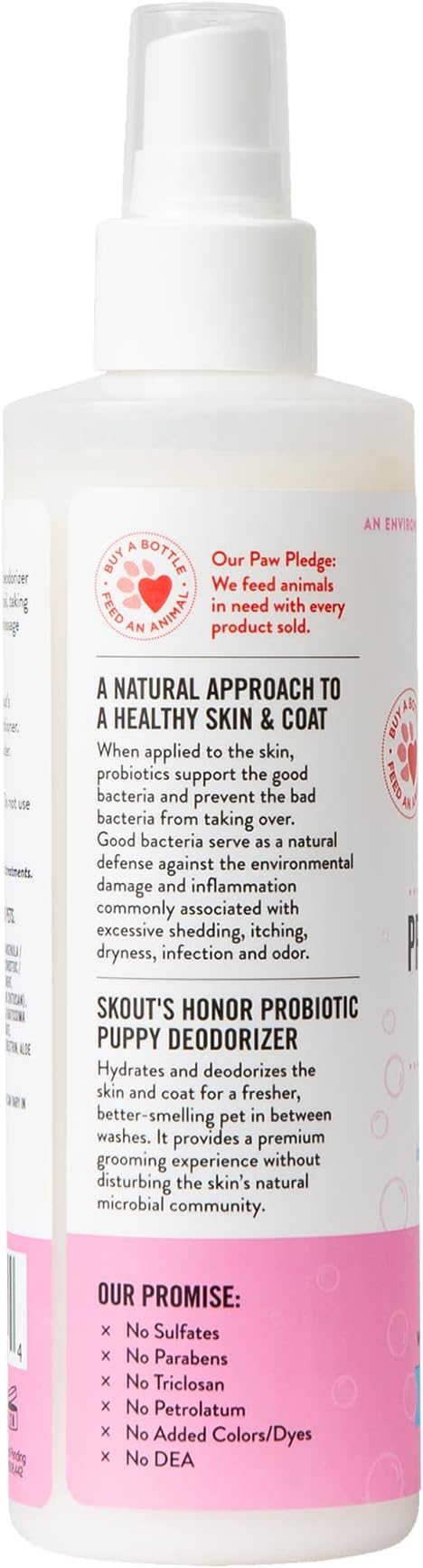 - Hydrates and Deodorizes - Keep your pet smelling fresh and feeling comfortable with Skout's Honor pet deodorizer spray, designed to hydrate and deodorize their skin and coat between washes.