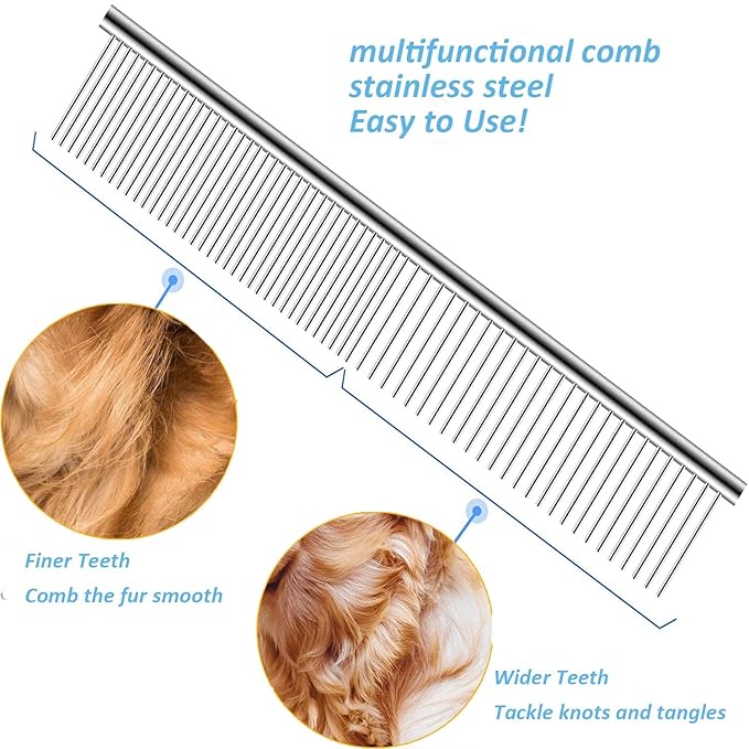 Pet Combs for Dog and Cat, Stainless Steel Grooming Comb with Different Spaced Teeth.