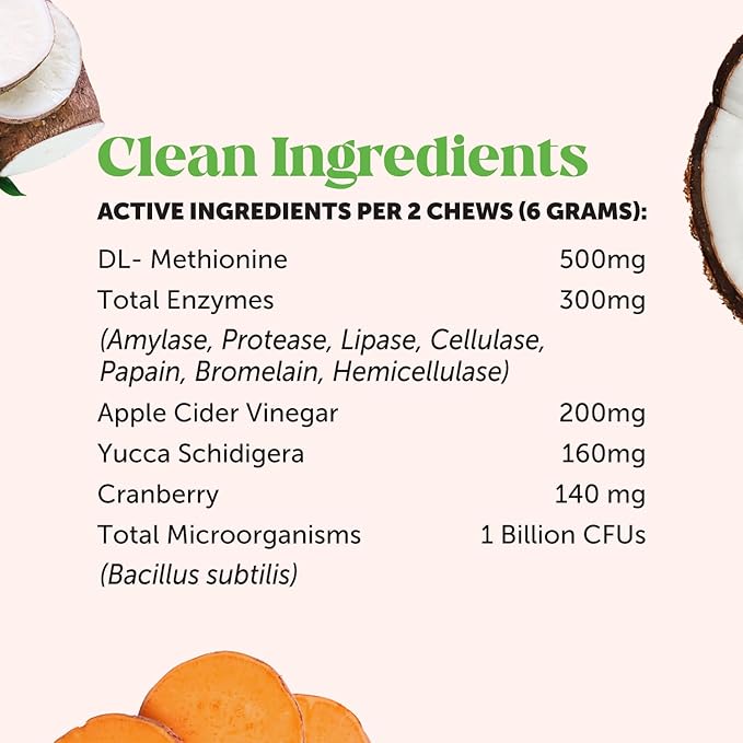 - Made with natural and other premium ingredients like DL-methionine, yucca schidigera, and probiotics: Grass Green Max Strength chews are filled with health-supporting ingredients you can trust. DL-Methionine helps improve nitrogen retention and reduce the amount of nitrogen (which causes the brown “burn” spots on the grass). Yucca schidigera helps decrease nitrogen and ammonia levels . Probiotics support a healthy gut and digestive system.
