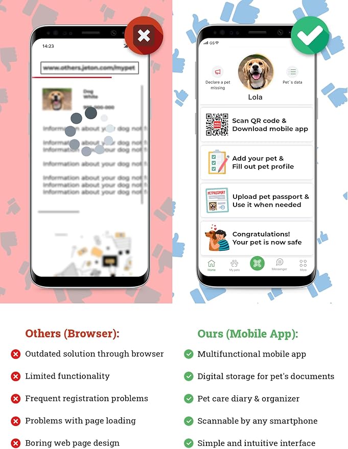- Multifunctional Mobile App - Pet tags for dogs & cats are linked to your pet's profile. You can keep pet's documents digitized and structured, effectively plan events in pet's life. You may store information about several pets at the same time.