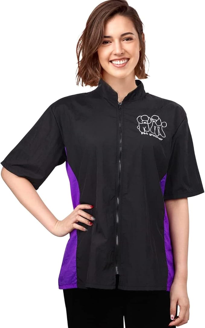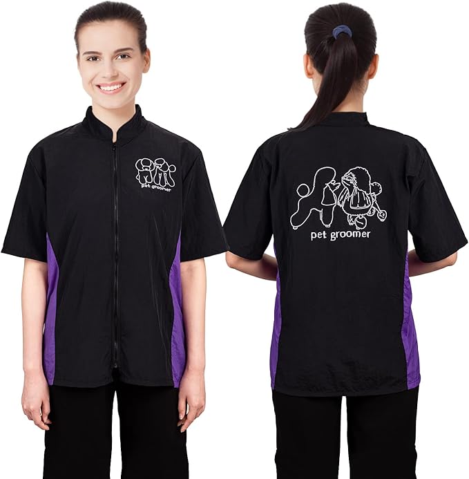 - 💜💜【Grooming with Style】-- With delicate embroidered poodle pattern, which gives a tactile appeal to this jacket. Meanwhile, not easy to fade or fall off. This lightweight jacket is made to keep you clean and comfortable all day with the unique addition of a purple trim, for an extra splash of style.