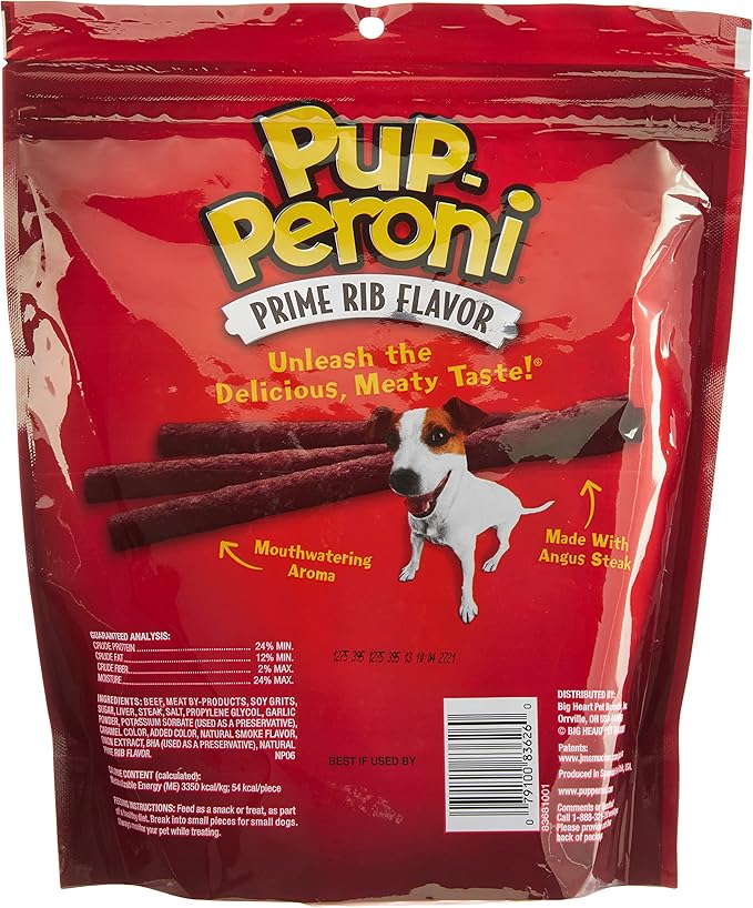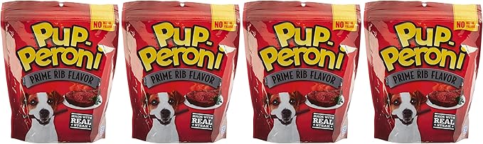- Contains four (4) 22.5-ounce bags of Pup-Peroni Prime Rib Flavor dog treats