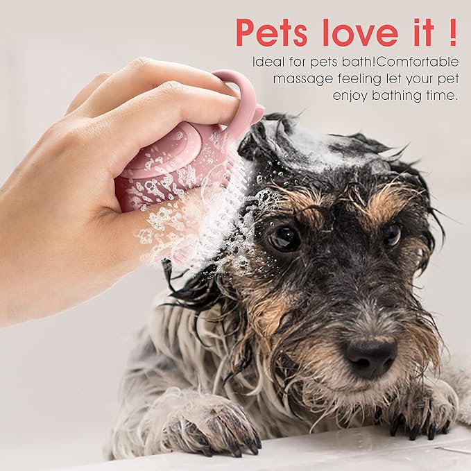 - 【Comfortable Massage Feelings】With shampoo dispensing design, the dog massage brush not only can provide a quick and thorough washing of your pets but also massage the skin to improve blood circulation. This pet brush can give your pet a very comfortable bath experience.