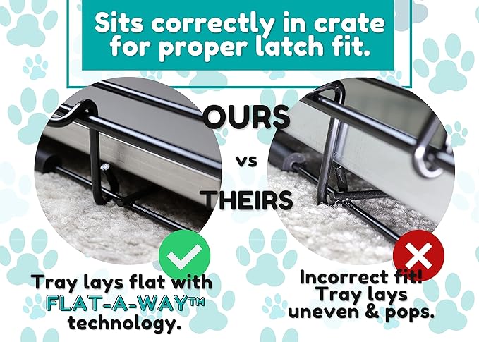 - Works well in most slide-out style crates (please carefully measure your interior dimensions to confirm this tray will fit your crate); Unique angled sidewall at the bottom was designed for a better crate fit. Tray also functions perfectly as a standalone floor protector (great for containing pet food bowls, muddy boots and shoes, pet potty pads, grease drips and more).