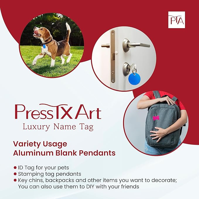 ![[Press TX Art] 40 Pcs Round(Circle), Bone, Rectangle, Heart Anodized Aluminum Stamping Blanks Tags 10 Mixed Colors Metal Engraving ID Name Tags with Rings (4 Types of Shapes in 10 Colors)](http://dear-paw.com/cdn/shop/files/91U7qccsfaL._AC_SX679.jpg?v=1751624205&width=1445)