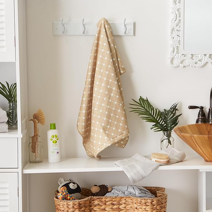 Bone Dry Pet Grooming Towel Collection Absorbent Microfiber X-Large, 41x23.5", Trellis Taupe