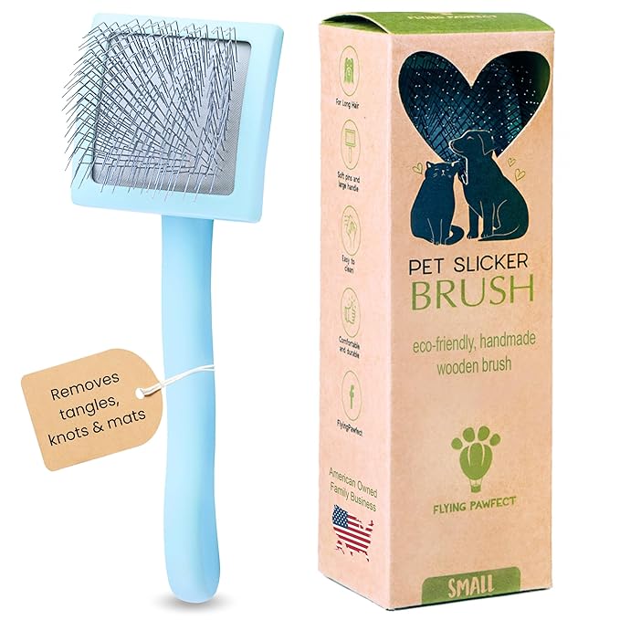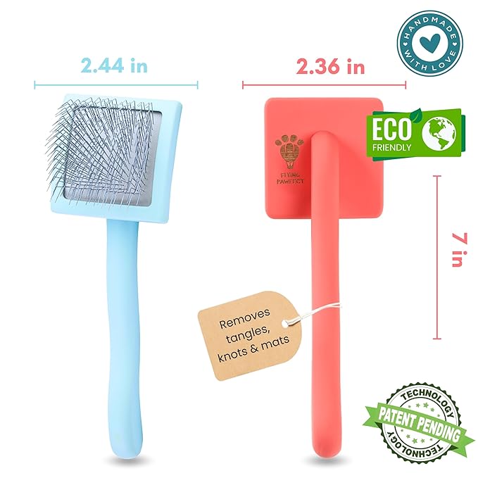 Pet Slicker Brush With Soft Massage Grooming Stainless Steel Pins - For Dematting, Shedding Fur, and Undercoat - Ideal Gift for Professional Pet Groomers - Long Slicker Brush - Flying Pawfect