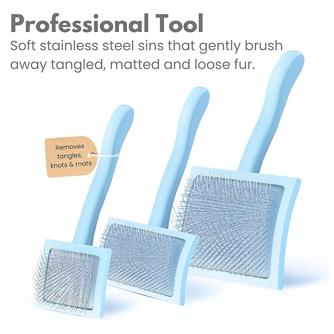 - LESS EFFORT TO IMPROVE GROOMING EFFICIENCY - Used by professional groomers, our fast and efficient dog and cat slicker brush features soft stainless-steel pins that gently brush away loose hair, undercoat, mats, and tangles.