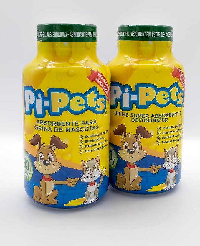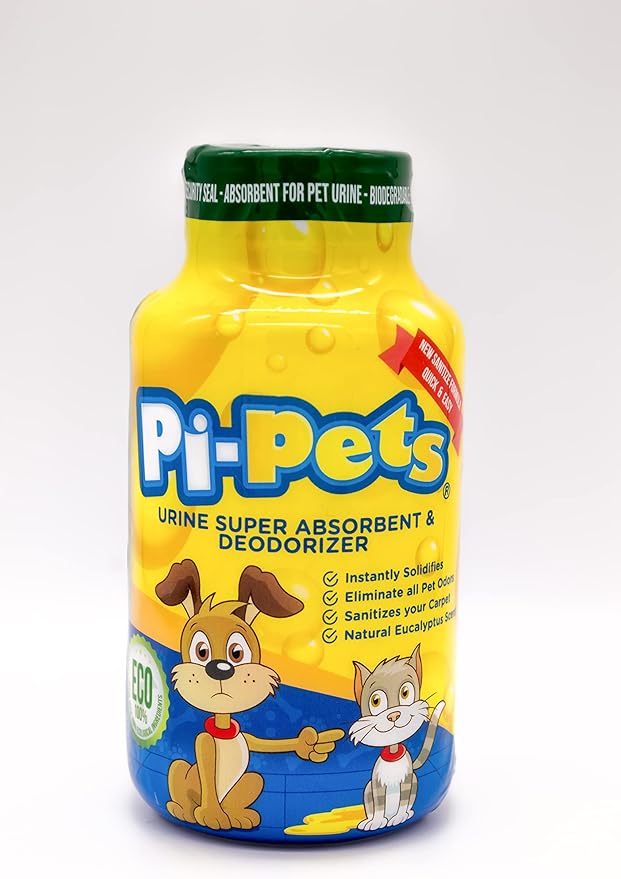 - URINE SOLIDIFIER & DEODORIZER POWDER. Simply sprinkle PI-PETS solidifier granules on the urine or waste in any type of floor, carpet and upholsters. Within seconds the urine is absorbed by the granules and turned instantly into a gel that can then be dumped out of any container like a pet loo bin, portable toilet, or a urinal. No odor, no mess, and no spills or leaks.