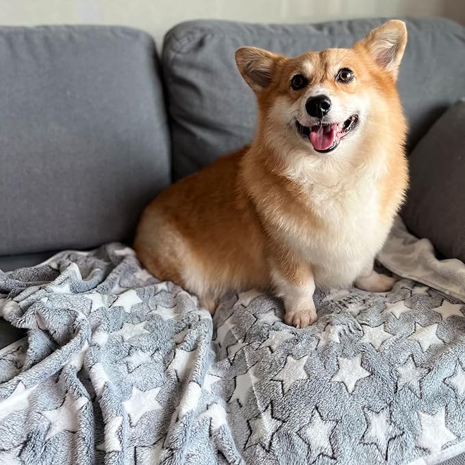 1 Pack 3 Puppy Blankets Cat Dog Blankets Super Soft Warm Sleep Mat Grey Star Cute Print Blanket Fluffy Fleece Pet Blanket Flannel Throw for Small Dogs Puppy Dogs Cats Small(23"x15")