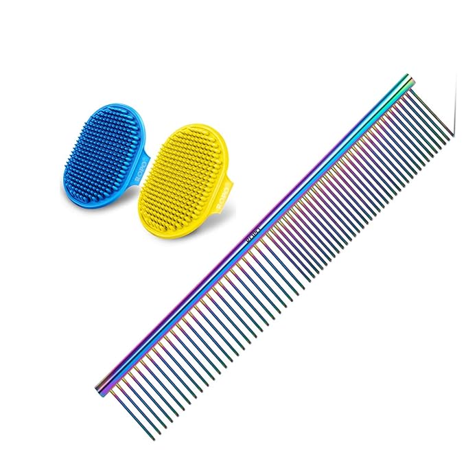 ROPO 2PC Dog Grooming Brush, Pet Shampoo Bath Brush&Pet steel comb, pet dog cat grooming comb