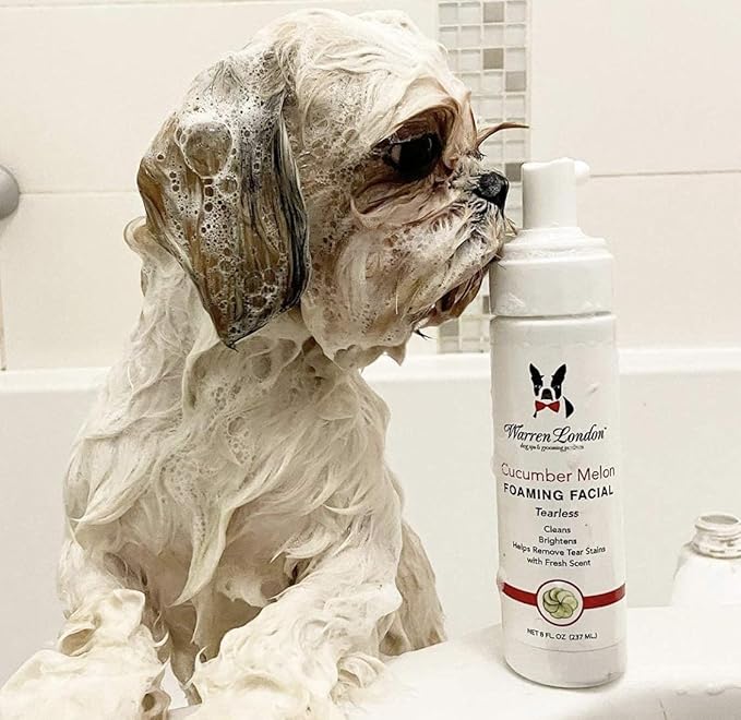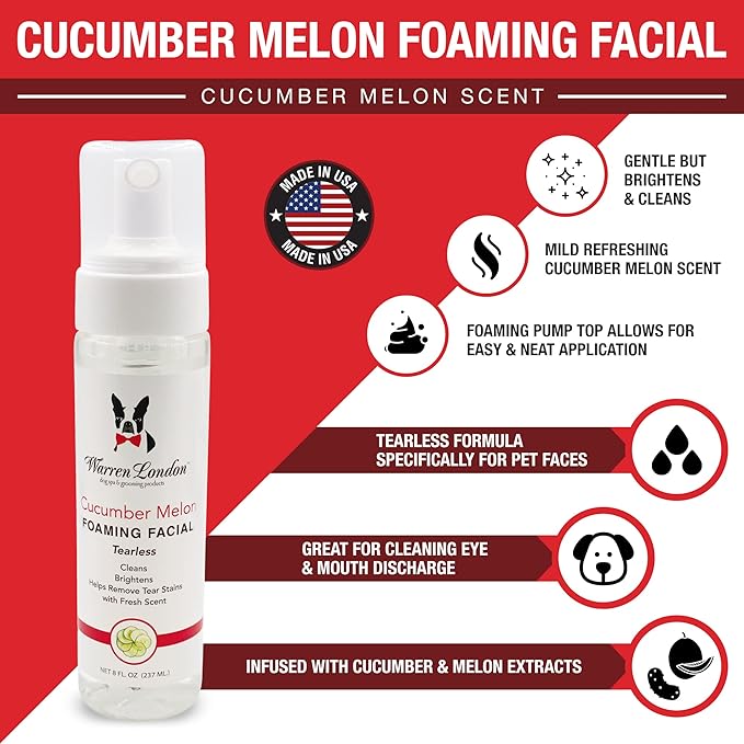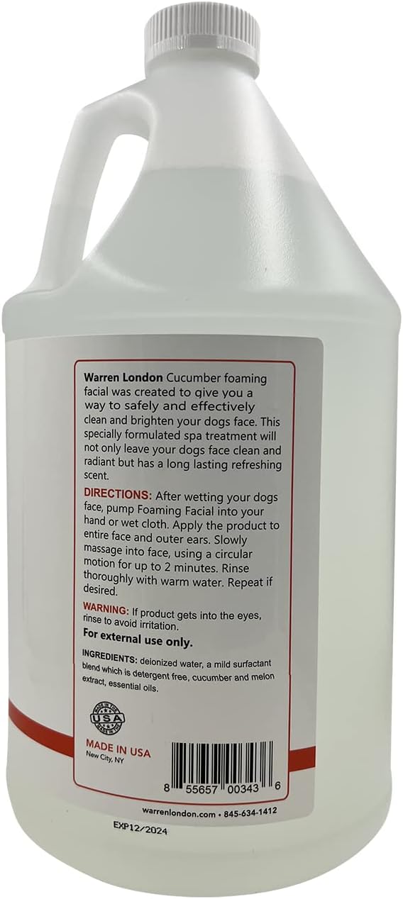 Warren London Foaming Pet Facial | Tear Free Dog Face Wash | Tearless Dog Shampoo for Faces & Dog Eye Stain Remover | Refreshing Cucumber Melon Wash | Made in USA | 1 Gallon
