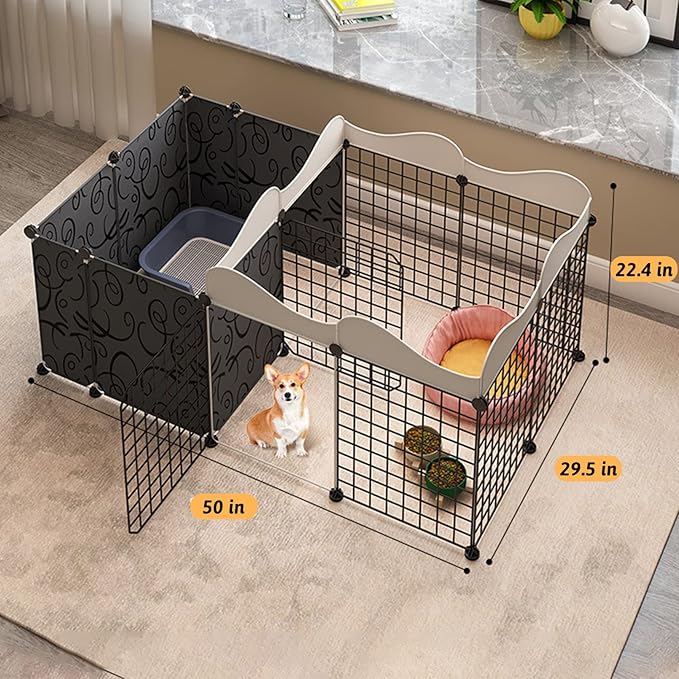 - 【Applicable Size】: Small pet playpen measures approximately 50''L x 29.5''W x 22.4''H when assembled, only suitable for rabbits, chinchillas, guinea pigs, hedgehogs, kittens, puppies or other small animals.